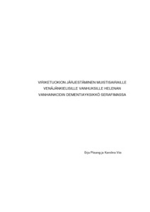 Piisang, Erja & Viio, Karolina. Viriketuokion järjestäminen muistisairaille venäjänkielisille vanhuksille Helenan vanhainkodin dementiayksikkö Serafimassa. Diak Etelä, Helsinki, kevät 2012, 53 sivua, 3 liitettä.
