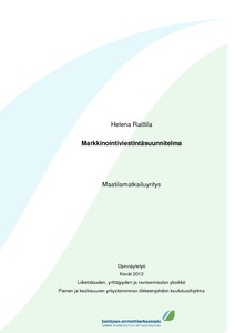 Tämän opinnäytetyön aiheena oli markkinointiviestinnän suunnitelman tekeminen eräälle maatilamatkailualan yritykselle. Opinnäytetyötä varten yrityksen palveluja käyttäneille asiakkaille tehtiin puhelinhaastattelu tai sähköpostikysely. Kohderyhmänä suunnitelmalle ja haastatteluille olivat yritysasiakkaat.