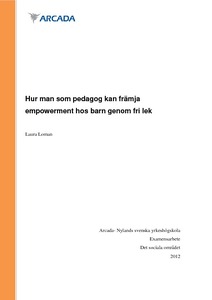 Syftet med denna forskning är att se hur en pedagog kan främja empowerment genom fri lek för barn under skolåldern, i kontexten daghem. Även att undersöka hur barn ut-vecklas genom fri lek och vad som krävs för denna ...