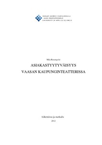 Teatterilla on erityinen voima, valttikortti – teatterissa katsoja kohtaa elävät näyttelijät. Erilaisen massaviihteen ja -median keskellä teatteri toimii parhaimmillaan elämysten synnyttäjänä ja keskustelun herättäjänä. Tämä tutkimus on tehty yhteistyössä Vaasan kaupunginteatterin kanssa ja sen tarkoitus on tutkia asiakastyytyväisyyttä Vaasan kaupunginteatterin palveluihin eli teatterin esityksiin, oheispalveluihin ja markkinointiviestintään sekä niiden laatuun. Tutkimuksen teoriaosuudessa käsitellään sekä Vaasan kaupunginteatteria että niitä teorioita, jotka ovat olennaisia empiirisen osuuden kannalta. Nämä teoriat käsittelevät palvelun laatua, suhdemarkkinointia ja asiakastyytyväisyyttä. Tutkimuksen empiirisessä osuudessa käsitellään markkinointitutkimusta, tutkimuksen tuloksia ja johtopäätöksiä. Toteutin tutkimuksen kyselytutkimuksena Vaasan kaupunginteatterilla jaettavilla kyselylomakkeilla. Tutkimuksen kohde-ryhmänä oli kaikenikäiset Vaasan kaupunginteatterin asiakkaat ja otoksena 200 näytösten katsojaa. Tutkimuksessa oli mukana viiden eri näytelmän näytösillat sekä viikolla että viikonloppuina ja tutkimusajankohtana oli marraskuu 2011. Tutkimuksesta selvisi, että suurin osa Vaasan kaupunginteatterin asiakkaista on yleisesti tyytyväisiä kaupunginteatterin esityksiin, oheispalveluihin ja markkinointiviestintään. Heidän mielestään kaupunginteatterin imago ja näytelmien taso on hyvä. Tutkimuksen mukaan kaupunginteatterin asiakkaat käyvät mieluiten katsomassa komediaesityksiä ja suurin osa asiakkaista saa tiedon teatteriesityksestä ystävän suositteluna, sanomalehdestä tai Internetistä. Jotain huomautettavaakin palveluista kuitenkin löytyi, kuten esimerkiksi kalliit lippujen hinnat. Moni käykin teatterissa esimerkiksi vain silloin, kun jokin yritys sponsoroi liput.