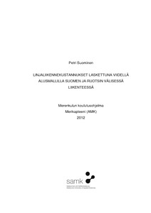 Opinnäytetyön tarkoituksena oli laskea linjaliikenteen satama- ja liikennöintikustannukset kolmelle ropax- ja kahdelle ro-ro-alukselle siten, että linjaliikennevarustamo omistaa myös linjalla liikennöivän aluksen. Kustannukset on laskettu Kaskisten ja neljän ruotsalaisen sataman välille. Kustannuksista on rajattu pois ahtaus- ja huolintakulut, koska ahtaus- ja huolintayhtiöiden taksat perustuvat tarjouksiin. Laivamallit on valittu LogiWin Oy:n tekemän liikennetarveselvityksen mukaan, laivassa pitää olla vähintään 1000 metriä kaistatilaa ja 200 matkustajapaikkaa. Kustannuslaskuja voidaan hyödyntää suoraan myös muihin saman kokoluokan ja tyypin aluksiin. Laskelmissa laivat liikennöivät Suomen lipun alla. Työn tarkoituksena on selvittää, mitä yksi edestakainen matka tulee maksamaan, jotta voidaan selvittää, kannattaako liikenne ja millä hinnalla voidaan reitillä operoida kyseisillä ja vastaavilla aluksilla. Lähteenä työssä on käytetty satamien laivanselvittäjiltä ja satamien WWW-sivuilta saatuja satamien hinnastoja. Työssä on huomioitu 12.12.2011 mennessä tiedossa olleet alennukset. Valtioiden perimät maksut ovat Suomen ja Ruotsin viranomaisten julkaisemista hinnastoista. Alusten arvona olen käyttänyt haastatteluista joidenkin laivanvarustajien sekä telakan henkilöiden kanssa saatuja tietoja sekä omaa tietämystäni käytettyjen ja uusien alusten hintatasosta. Lisäksi jotkut työssä mainitut alukset ovat myynnissä, mutta toki on vaikea ennustaa niiden mahdollista todellista hintaa. Lopputuloksena työssä saadaan selville, mitä kullekin työssä olevalle alukselle tulee maksamaan edestakainen matka Ruotsin satamaan, joko Härnösandiin, Sunsvalliin, Norsundiin tai Gävleen.