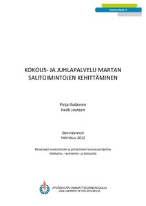 Opinnäytetyön tarkoituksena oli laatia Keski-Suomen Martat ry:n Kokous- ja juhlapalvelu Martalle perehdytyskansio sekä kehittää salitoimintoja. Martat siirtyivät kesällä 2010 uusiin tiloihin Yliopistonkadulle ja tarvitsivat apua toiminnan käyntiin saattamisessa.