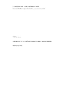 Opinnäytetyö käsittelee Eurokoodi 5:n käyttöönottoa suunnittelutoimistossa. Tarkoi-tuksena oli selvittää, mihin asioihin eurokoodi vaikuttaa asuinrakennusten mitoituk-sessa ja mitkä osa-alueet on syytä huomioida uudessa mitoitusstandardissa. Vertailua alkuperäiseen mitoitustapaan rakennusmääräyskokoelman avulla ei työssä tehty.
