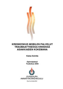 Opinnäytetyö toteutettiin yhteistyössä Kriisikeskus Mobilen kanssa. Tutkimuksen tavoitteena oli selvittää traumaattisen kriisin kokeneiden asiakkaiden kokemuksia Kriisikeskus Mobilen palve-luista, sekä millaisessa tilanteessa heistä tuli Kriisikeskus Mobilen asiakkaita ja mistä he saivat tiedon palvelusta. Tutkimuksessa selvitettiin miten asiakkaiden ennakko-oletukset palveluista vaikuttivat heidän odotuksiinsa palvelusta ja miten palvelut vastasivat heidän odotuksiin ja tarpeisiin. Työssä selvitettiin myös mitä asiakkaat jäivät palvelulta kaipaamaan.