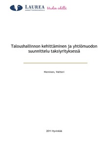 Opinnäytetyön aihe on pienten taksiyritysten (1-2 lupaa) taloushallinto. Tämä opinnäytetyö on tehty yhteistyössä erään pääkaupunkiseudulla toimivan tilitoimiston kanssa. Opinnäytetyön tarkoitus on analysoida pienten taksiyritysten kuukausittaista taloushallintoa ja etsiä mahdollisia keinoja toiminnan tehostamiseksi. Toinen tarkoitus on tutkia kannattaako pienen taksiyrityksen toimia toiminimenä vai osakeyhtiönä.