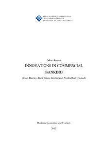Tämän opinnäytetyön tarkoituksena on identifioida sellaisia sekä rahatalouden että teknologian innovaatioita, jotka ovat auttaneet kehittämään pankkitoimintaa ja siten myötävaikuttaneet asiakkaiden tarpeiden kohtaamiseen ja asiakastyytyväisyyteen. Opinnäytetyö identifioi kahden pankin, Barclay Bank Ghana ja Suomen Nordea-pankin, innovaatioita ja selvittää, kuinka ne ovat edistäneet pankkitoimintaa ja asiakastyytyväisyyttä. Tämä tutkimus on tehty Vaasan ammattikorkeakoulun kansainvälisen liiketalouden koulutusohjelman lopputyönä.Opinnäytetyön johdannossa kuvataan innovaatioita palvelutarjonnan kontekstissa, sekä selvitetään, kuinka merkityksellisiä kyseiset innovaatiot ovat niin asiakkaan kuin organisaation näkökulmasta. Opinnäytetyön teoriaosassa kuvataan yksityiskohtaisesti innovaatiokäsitettä sekä tarkastellaan innovaatioiden merkitystä. Teoriaosa kuvaa myös yksityiskohtaisesti innovaatioiden eri dimensioita samoin kuin innovaatioprosessiakin. Lisäksi identifioidaan niitä innovaatioita, jotka ovat luonteeltaan niin teknologiaan kuin rahatalouteen kuuluvia, sekä tarkastellaan tekijöitä, joita organisaatioiden tulee huomioida innovaatioiden suhteen.Opinnäytetyön empiirisessä osassa keskitytään edellämainittujen pankkien innovaatioiden identifioimiseen, sekä siihen, miten kyseiset innovaatiot ovat edesauttaneet pankkitoimintaa ja asiakkaiden tarpeiden kohtaamista. Empiirinen osa keskittyy erityisesti Barclay Bank Ghana-pankin asiakkaisiin tunnistaen sellaisia innovaatioita, jotka ovat myötävaikuttaneet asiakkaiden tarpeiden kohtaamiseen. Empiirisessä osassa käsitellään myös joitain asiakkaiden kohtaamia ongelmia, sekä esitellään suositeltavia ongelmaratkaisumalleja Barclay Bank Ghana-pankille. Tutkimustuloksina identifioidaan tiettyjä innovaatioita ja selvitetään, kuinka nämä ovat myötävaikuttaneet niin pankkitoiminnan kehittymiseen kuin asiakastyytyväisyyteen. Jotkut näistä innovaatioista ovat edesauttaneet pankkeja tarjoamaan laadukkaita tuotteita ja palveluja asiakkailleen, sekä auttaneet lisäämään tuottavuutta. Innovaatioiden tuloksena on pankkitoiminnasta tullut asiakkaille nopeaa, edullista ja tarkoituksenmukaista