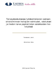 Terveyskeskuksessa työskentelevien vastaanottotoiminnan hoitajien valmiudet, odotukset ja tiedon tarve psykiatristen asiakkaiden hoitotyössä