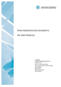 Opinnäytetyömme aiheena oli PDM-järjestelmän hankinta PK-yritykselle.. Valintaprosessi eteni COSA-toimintamallin mukaan, toimintamallin tarkoituksena on tuoda hankintaprosessi mahdollisimman lähelle käyttäjää ja minimoida toimittajan vaikutusta valintaan. COSA-toimintamallin mukaan koottiin ensiksi projektiryhmä. Projektiryhmä koostui seitsemästä henkilöstä. Mukana oli Finnsampolta toimitusjohtaja, suunnittelija, projektipäällikkö, IT-tukihenkilö sekä tutkija ja kaksi opiskelijaa Lahden ammattikorkeakoulusta.
