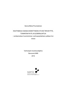 Opinnäytetyön teoreettisessa osuudessa, kirjallisuuskatsauksessa, käsiteltiin vanhenemista, ravitsemustilaa, ravitsemushoitoa ja potilasohjausta. Kirjallisuuskatsaus koottiin kirjallisuuden, erilaisten ravitsemusta koskevien suositusten sekä tutkimusten pohjalta. Ohjauskansion sisältö koottiin kirjallisuuskatsauksesta. Ohjauskansiossa painotettiin ikääntymismuutoksia ja niiden vaikutusta ravitsemukseen, ravitsemussuosituksia ikääntymisen eri vaiheissa, ravitsemustilan arviointia ja MNA-mittarin käyttöä sekä juomia ja suojaravintoaineita osana ravitsemusta. Omana kokonaisuutenaan ohjauskansiossa käsiteltiin myös ravitsemushoitoa.