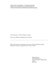 The purpose of the thesis was to investigate the new European corporate model, the so called Societas Europaea (SE). The objective of this work was to answer whether the new corporate system can fulfil its purpose to facilitate trade within Europe and whether the European Commission was able to create one uniform, supranational model that serves the needs of all European member states.