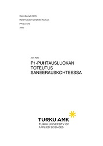 Opinnäytetyön tarkoitus on selvittää mitä P1-puhtausluokka tarkoittaa, miksi sitä käytetään ja miten se toteutetaan työmaalla.