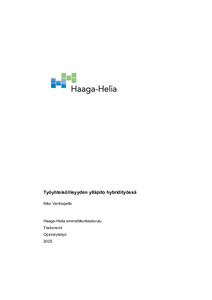 (2025)Tässä opinnäytetyössä tutkitaan, miten työyhteisöllisyyttä voidaan ylläpitää hybridityössä kirjallisuuskatsauksen avulla. Opinnäytetyössä myös tarkasteltiin työyhteisöllisyyden merkitystä hybridityössä sekä hybridityön ... -