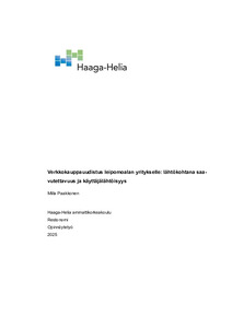 (2025)Tämä opinnäytetyö tarkastelee Microsoft 365 Copilot -tekoälyavustajan käyttöönottoa ja käyttäjä-kokemuksia suomalaisen IT-palveluyrityksen Customer Success Management (CSM) -tiimissä. Tutkimuksen taustalla on tekoälyn nopea ...Rajoitettu käyttöoikeus / Restricted access / Tillgången begränsad -