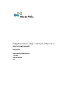 (2025)Tässä opinnäytetyössä tarkasteltiin Saksan, Itävallan ja Sveitsin mikrovaikuttajien motiiveja ja arvoja suomalaisen brändiyhteistyön näkökulmasta. Työ sai alkunsa suomalaisen design-korubrändin Luv Northin tavoitteesta ... -