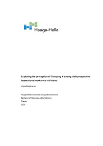 (2025)The focus of this thesis was to understand how international workforce perceive Company X. The research was commissioned by a Finnish personnel service company operating in Southern Finland. The topic is timely as the ... -