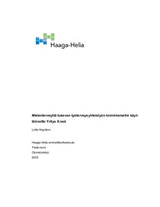 Mielenterveyttä tukevan työterveysyhteistyön toimintamallin käyttöönotto Yritys X:ssä