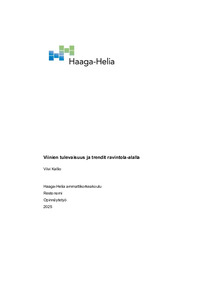 (2025)Tämän opinnäytetyön tavoitteena oli tarkastella viinien tulevaisuutta ja nousevia trendejä ravintola-alalla. Tutkimus keskittyy erityisesti siihen, miten kuluttajien muuttuvat mieltymykset, vastuullisuusajattelu sekä trendit ... -