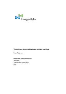 (2025)Tämän opinnäytetyön tavoitteena on tarkastella vastuullisuuden merkitystä ja sen vaikutuksia yritysrahoitukseen. Vastuullisuuden merkitys on kasvanut viimevuosina ja siitä puhutaan yhä enemmän myös rahoituksen yhteydessä. ...