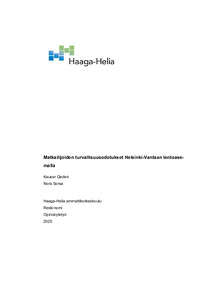 (2025)Tämän opinnäytetyön tavoitteena oli selvittää, mitä turvallisuuteen liittyviä odotuksia matkustajilla on Helsinki-Vantaan lentoasemalla. Aihe valittiin, koska lentomatkustaminen kiinnosti tekijöitä henkilökohtaisesti, ja ... -