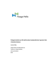 (2025)Tämän toiminnallisen opinnäytetyön tavoitteena oli selvittää, miten fotogrammetriaa voidaan menetelmänä hyödyntää fyysisten tilojen kartoittamisessa, ja kuinka fotogrammetrian avulla tuotettuja 3D-malleja voidaan jatkojalostaa ... -