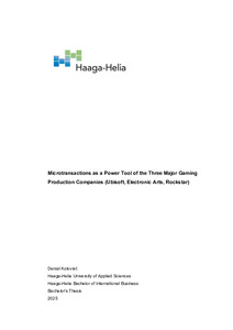 (2025)This study examines the significance of microtransactions within the revenue structures of three major video game publishers: Electronic Arts, Ubisoft, and Take-Two Interactive. By integrating financial data with ... -