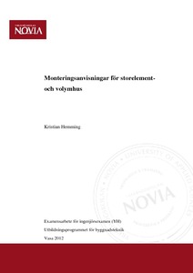 Tämä opinnäytetyö on Oy Simons Element Ab:lle tehty tilaustyö. Tavoitteena oli kehittää pystytysohjeet suurelementeille ja valmistaloille. Pystytyskäsikirjan tarkoitus on helpottaa asentajien koulutusta sekä antaa asentajille selkeät ohjeet siitä, miten eri rakennusvaiheet tehdään. Pystytysohjeet perustuvat toimeksiantajan toivomuksiin, keskusteluihin yhtiön asentajien kanssa ja rakennusmääräysvaatimuksiin joita tulee noudattaa. Oppinäytetyön tulos on pystytyskäsikirja suurelementeille ja valmistaloille.