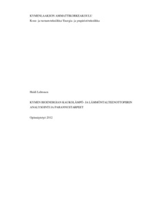 Tämä opinnäytetyö on tehty KSS Energia Oy:lle. Työn tarkoituksena oli Kymen Bioenergia Oy:n energiatehokkuuden parantaminen ja kaukolämpöpiirissä esiintyvien ongelmakohtien poistaminen. Työssä perehdyttiin kaukolämmön kulutuskohteisiin ja lämmöntalteenottoon. Laitoksella on kaasumoottori lämmön ja sähkön tuotantoon. Kaasukattila toimii hätävarana, jos kaasumoottori ei ole toiminnassa. Laitoksella on myös kaukolämpövaraaja, jolla pystytään tasaamaan kulutusta.