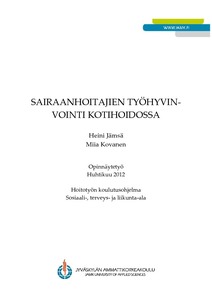 Opinnäytetyön tarkoitus oli selvittää kotihoidossa työskentelevien sairaanhoitajien työhyvinvointia heidän itsensä kokemana. Tavoitteena oli tuottaa tietoa siitä, millaiset tekijät tukevat ja mitkä puolestaan heikentävät työhyvinvointia. Lisäksi saatuja tuloksia voidaan hyödyntää työhyvinvoinnin kehittämisessä kotihoidossa.