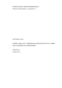 Tämän opinnäytetyön tarkoituksena oli selvittää käytössä olevien paperi-laminaatti –steriilipakkausten käytettävyyttä steriilien välineiden käyttökohteissa. Tutkimus alkoi osana KopTeri-hanketta. KopTerin tavoitteena on kehittää uusia puukuitupohjaisia tuotteita terveydenhuoltoon. KopTeri on osa Älykop-hanketta. Työelämän yhdyshen-kilöt opinnäytetyölle ovat Kymenlaakson keskussairaalan välinehuollosta. Opinnäyte-työn tavoitteena oli tehdä pohjatutkimusta sille, olisiko tulevaisuudessa mahdollisuus valmistaa paperi-laminaatti –steriilipakkaukset kokonaan puukuidusta. Toisena tavoit-teena oli auttaa Kymenlaakson keskussairaalan välinehuoltoa tuotekehittelyssään.