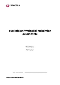 Opinnäytetyön tavoitteena oli suunnitella robotilla tehtävään kappaleenkäsittelyyn soveltuvat automaattiset jyrsintäkiinnikkeet epäsymmetrisen puusta valmistettavan tuolinjalan jyrsintään.