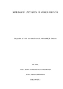 Yin, Yiming 2012. Integration of Flash user interface with PHP and SQL database. Bachelor’s thesis. Kemi-Tornio University of Applied sciences. Business and Culture. Pages 40.
