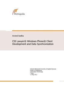 CSI Helsinki Oy has ERP software called CSI Lawyer® which is intended for law and consultant companies. CSI Helsinki Oy has great demand to develop the mobile clients for CSI Lawyer® for the most common mobile platforms available at present. The purpose of this project was to develop the Windows Phone® client application called CSI Mobile® for CSI Lawyer® including backend data synchronization business logic.