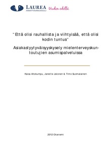 ”Että olisi rauhallista ja viihtyisää, että olisi kodin tuntua” Asiakastyytyväisyyskysely mielenterveyskuntoutujien asumispalveluissa