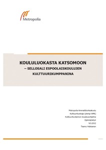 Opinnäytetyössäni käsittelen Espoossa sijaitsevan Sellosalin lapsille ja nuorille suunnattua kulttuuritarjontaa espoolaisten koulujen näkökulmasta. Tavoitteenani on selvittää, miten Sellosalin tarjontaa tulisi kehittää, jotta ala-asteet ja yläasteet osallistuisivat siihen aktiivisemmin. Työn tilaajana toimii Sellosali.