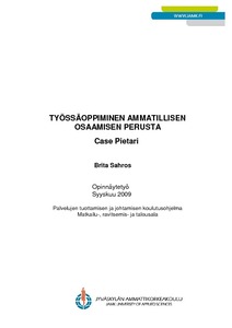 Työssäoppiminen ammatillisen osaamisen perusta Case Pietari