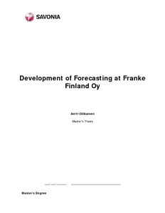 The aim of this thesis was development of the forecasting process at Franke Finland. Franke Finland provides kitchen system products for households, and washroom and sanitary system products for the public and semi-public sectors. Current forecasting was on common level and based on only Euros and therefore did not give enough information for the managers to make their decisions.