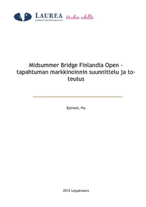 Tämän opinnäytetyön aiheena on rakentaa toimiva ja menestyksekäs markkinointisuunnitelma Midsummer Bridge Finlandia Open -tapahtumalle. Midsummer Bridge Finlandia Open -tapahtuma pidetään kesäkuussa 2012 Majatalo Onnelassa Tuusulassa. Midsummer Bridge Finlandia Open -tapahtuma on ensimmäistä kertaa Suomessa järjestettävä tasokas ja kokonaisvaltainen bridgetapahtuma, johon odotetaan noin 200 osallistujaa ympäri Euroopan. Tässä opinnäytetyössä käsitellään myös markkinoinnin toteutusta tapahtumassa.