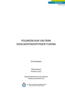 Opinnäytetyön tarkoitus oli käyttöönottaa ja mukauttaa ohjelmiston elinkaarenhallinnan työkalu Polarion ALM opinnäytetyön toimeksiantajalle Valtra Oy Ab:lle. Polarionin käyttöönoton tavoitteena oli tukea Valtran ohjelmistokehitystä parantamalla ohjelmiston elinkaaren eri vaiheiden ja tuotosten jäljitettävyyttä toisiinsa sekä kykyä suunnitella ja seurata edistymistä.