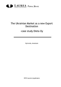 The main objective of this thesis is to provide an insight into the steps to take when consider doing business in Ukraine. This thesis also contains basic theoretical knowledge for new investors to guide them when choosing Ukraine as a new market. Since the target company here is Dieta, the author has provided an overview of Ukraine’s economy, business culture, potential opportunities and an introduction to other relevant issues. Dieta will find the data to be useful because most of it is practical information that can be taken into consideration immediately.