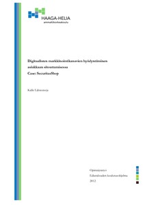 Tämä opinnäytetyö on tehty toimeksiantona Securitas Oy:lle. Raportissa tutkitaan vaihtoehtoisia digitaalisen toimintaympäristön markkinointikanavia, joiden avulla Securitas Oy ja yhtiön verkkokauppa, SecuritasShop, voisivat sitouttaa asiakkaita paremmin ja näin myös pidentää asiakkuuksien kestoa. SecuritasShop -verkkokauppa ei sellaisenaan ole osa Securitaksen ydinliiketoimintaa, mutta toimii tärkeänä markkinointikanavana ja lisäarvon tuottajana nykyisille asiakkaille.