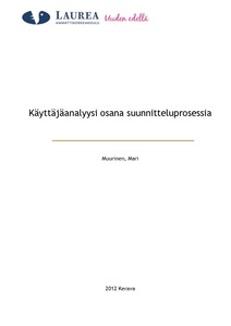 Lopputyön aiheena oli käyttäjäanalyysi ja sen hyödyntäminen käyttäjäkeskeisessä suunnitteluprosessissa. Tavoitteena oli yhdistää olemassa olevaa teoriaa sekä määrittää käyttäjäryhmiä asiakasprojektiin, jonka avulla olemassa olevaa palvelua asiakas voisi kehittää kohdentamalla suunnittelun kriittisiin käyttäjäryhmiin. Tutkimuksessa tuotiin persoonat osaksi käyttäjäanalyysiä ja haettiin teoreettista tietoa, miten persoonia voidaan hyödyntää osana käyttäjäanalyysiä. Persoonat on yhdistetty käyttäjäanalyysiin ensimmäistä kertaa tässä lopputyössä, tässä muodossa. Tutkimuskysymyksien tarkoituksena oli selvittää kuinka käyttäjäanalyysi toimii osana suunnitteluprosessina, miten persoonia voidaan hyödyntää osana käyttäjäanalyysiä ja mitä hyötyä asiakkaalle oli tutkimuksesta.