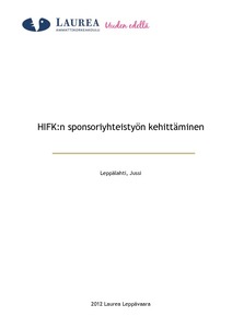 Tämän opinnäytetyön tarkoituksena oli tutkia, miten HIFK Jalkapallon sponsorointiyhteistyötä voisi kehittää. Työn tavoitteena oli luoda seuralle realistisia ja konkreettisia kehitysehdotuksia sponsorointiyhteistyösuhteiden luomiseen, ylläpitämiseen ja kehittämiseen.