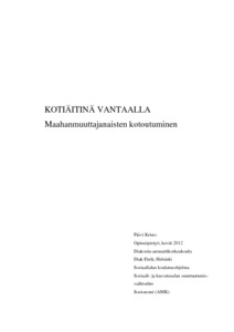 Kristo, Päivi. Kotiäitinä Vantaalla : maahanmuuttajanaisten kotoutuminen. Diak Etelä, Helsinki, kevät 2012, 60 s., 3 liitettä.