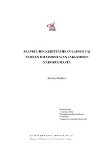 Tämän työelämälähtöisen opinnäytetyön aihe syntyi siitä, että Tampereella omaishoidon tuki on organisoitu kokonaisuutena ikäihmisten hyvinvoinnin prosessiin, kuten myös lasten ja nuorten omaishoidon tuki. Tämän vuoksi lasten ja nuorten omaishoidon tuen kehittäminen jää paljolti tekemättä. Lasta tai nuorta hoitavista omaishoitajista ja heidän jaksamisestaan ei ole tehty tutkimuksia, joten tarve aiheen selvittämiselle oli olemassa. Opinnäytetyön teoreettiset näkökulmat olivat omaishoidon tuki, omaishoitajan jaksaminen sekä palvelujen asiakaslähtöinen kehittäminen. Opinnäytetyön tarkoitus oli selvittää, minkälaisia omaishoidon tuen palveluja käytetään ja miten, ovatko palvelut riittäviä omaishoitajan jaksamisen kannalta ja mitä palveluja omaishoitajat tarvitsevat. Lisäksi tavoitteena oli saada selville, miten lasten ja nuorten omaishoidon tuen palveluja Tampereella voidaan kehittää asiakaslähtöisesti, jotta omaishoitajat jaksaisivat paremmin.