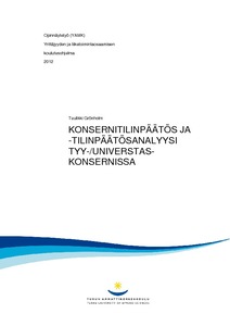 Tässä opinnäytetyössä laadittiin konsernitilinpäätös Turun yliopiston ylioppilaskunnan omistamalle Universtas-konsernille. Konsernissa ei ole aikaisemmin laadittu konsernitilinpäätöstä, mutta sen lakisääteinen laatiminen tulee ajankohtaiseksi lähivuosina. Konsernitilinpäätöksen laadintaan käytettiin konsernin yritysten virallisia tilinpäätöksiä tilikaudelta 2011 sekä tilinpäätöksiä täydentäviä konsernin sisäisiä asiakirjoja. Lisäksi konsernituloslaskelma ja -tase yhdisteltiin julkisoikeudellisen emoyhteisön järjestökaavalla laadittuun tilinpäätökseen. Laaditun konsernitilinpäätöksen eliminointitositteiden ja taulukkolaskelmien tehtävänä on toimia tulevaisuudessa pohjana konsernissa laadittaville vuosittaisille konsernitilinpäätöksille.