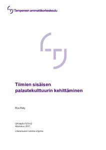 Opinnäytetyön aihe muotoutui haasteista toimeksiantajayrityksen eri tiimien palautekulttuurissa. Työn tavoite oli innovoida ehdotuksia tiimien palautekulttuurin kehittämiseksi. Tutkimuksessa selvitettiin toimihenkilöiden kokemuksia oman tiiminsä palautekulttuurista ja toiveita sen kehittämiseksi. Tutkimus toteutettiin kvalitatiivisena tutkimuksena haastattelemalla valittuja toimihenkilöitä.