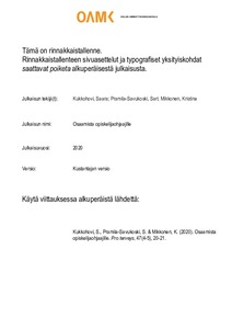 Kukkohovi, Saara; Pramila-Savukoski, Sari; Mikkonen, Kristina (2020)
