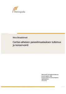 Opinnäytetyön kohteena oli tammipaneelille öljyvärein maalattu maalaus, jonka aiheena on lähimmäisenrakkauden hyveen allegoria eli Caritas. Maalauksen taiteilijaa ja ajoitusta ei tunneta. Maalauksen kunto oli kohtalainen. Irtoavia maalikerroksia ei juuri ollut, mutta pääasiassa käsittelystä johtuneita aikaisempia vaurioita oli restauroitu huolimattomasti ja lakka oli epätasainen. Paneelissa oli jonkin verran rakenteellisia vaurioita.