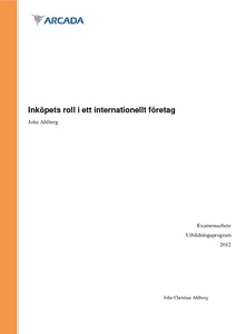 I dagens läge har företagets materialflöde blivit allt viktigare för ett bra resultat. Globaliseringen har påverkat företagsvärldens syn på inköpsprocessen. Ökad konkurrens pressar företaget att minska kostnaderna. I detta arbete har företaget tidigare haft nästan monopol ställning i branschen, men nya konkurrenter har etablerat sig och detta har orsakat stora ändringar i företagets business strategier. Detta examensarbete handlar om ett globalt företag och dess inköpsprocesser. Hur företaget sköter sina processer på olika avdelningar. Mitt jobb var att hitta förbättringsförslag för att man skulle kunna effektivera personalens tidsanvändning och komma med ett klart sätt att hantera inköpsprocesserna. Undersökningen utfördes med en blandning av kvalitativa och kvantitativa undersökningsmetoder. Workshops ordnades med en grupp på 5–6 personer och en enkät skickades åt alla som hade någonting att göra med inköp. Workshops är ett mycket effektivt sätt att få personalen att debattera om ämnet. Resultatet visar att det finns stora brister i företagets inköpsprocesser. Kommunikationen fungerar inte mellan de olika avdelningarna och processerna är ofta okända för personalen. Management of material has become an very important section in a company’s strive for better result. Globalisation has made companies want to learn more about their purchasing. New competitive companies have made companies in the same bransch reduce their using of money. In this case the company has had an almost monopolic place on the market and when other companies came to the market the company had to change their business-strategy. This thesis is about a global company and its purchasing process. How the company manages different purchasing sections within the firm. My job was to make an on time picture of its purchasing process and find a solution for the company’s purchasing strategies. The empirical case study developed through quanitiative and qualitative case study. There were some workshops with a group of 5-6 persones in it. The second was to send a questionblanket to people that work with purchasing. Workshops are a very effective way to get a bigger picture of whats wrong in the case. My result is that the company has many lacks in the purchasing process. Communication does not work between the sections and the different processes are often unknown to the workers.