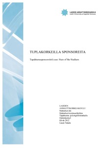 Tämä opinnäytetyö käsittelee tapahtumasponsorointia, sen syitä ja sopimuksen syntymistä. Sen tarkoituksena on selvittää, miksi yritykset sponsoroivat tapahtumaa ja lajia, joka ei kuulu heidän toimialaansa. Case-esimerkkinä on helmikuussa 2012 Lahdessa järjestetty Stars of the Stadium ja sen neljä yhteistyökumppania, joiden toimialat eivät liity lumilautailuun. Toimeksiantajana työlle toimi Stars of the Stadium-tapahtuman järjestävä yritys KustomPromotion Oy.